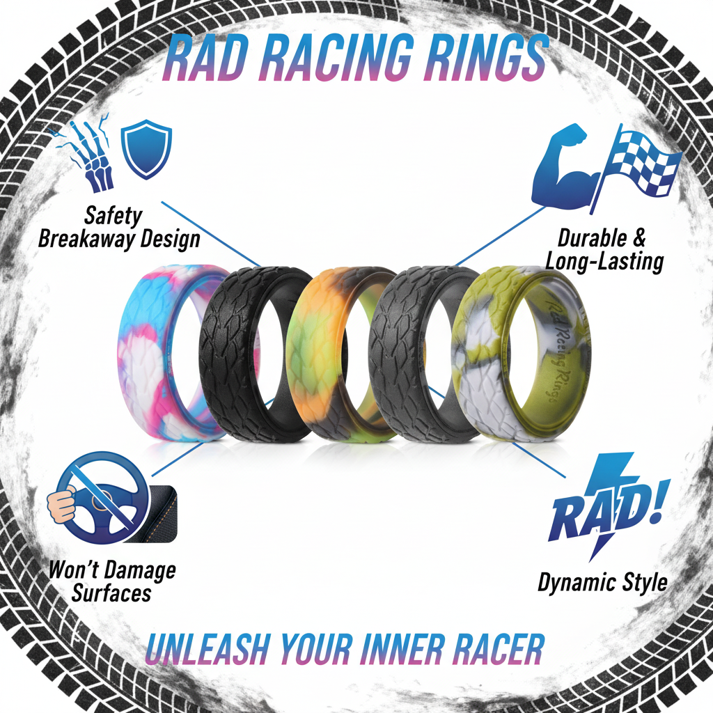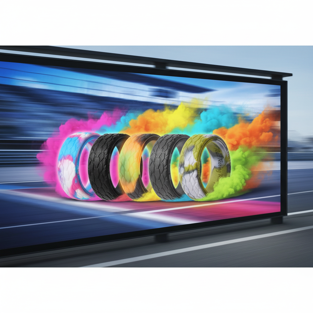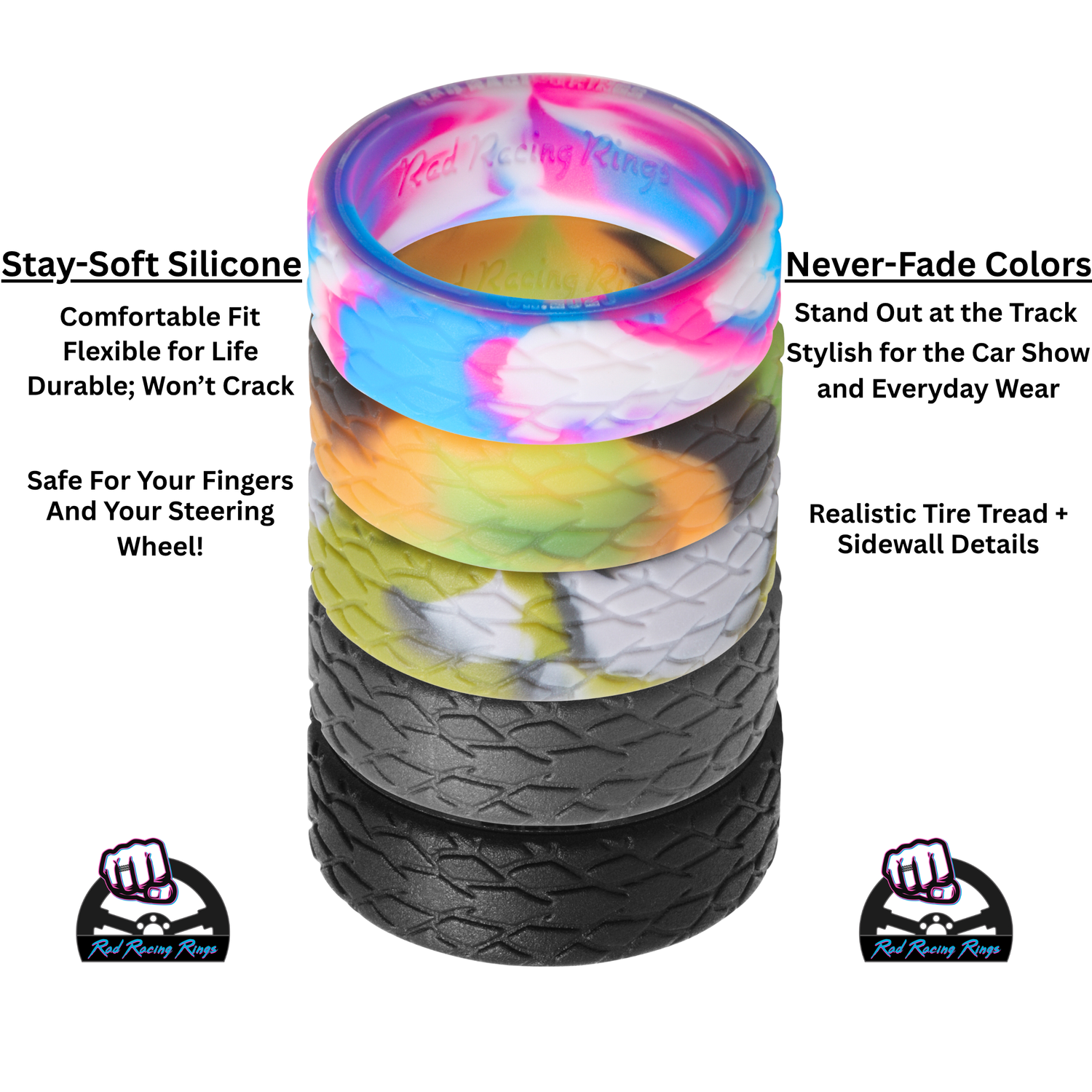 Elevate Your Look and Performance with Multi-Color Tire Tread Silicone Racing Rings!
